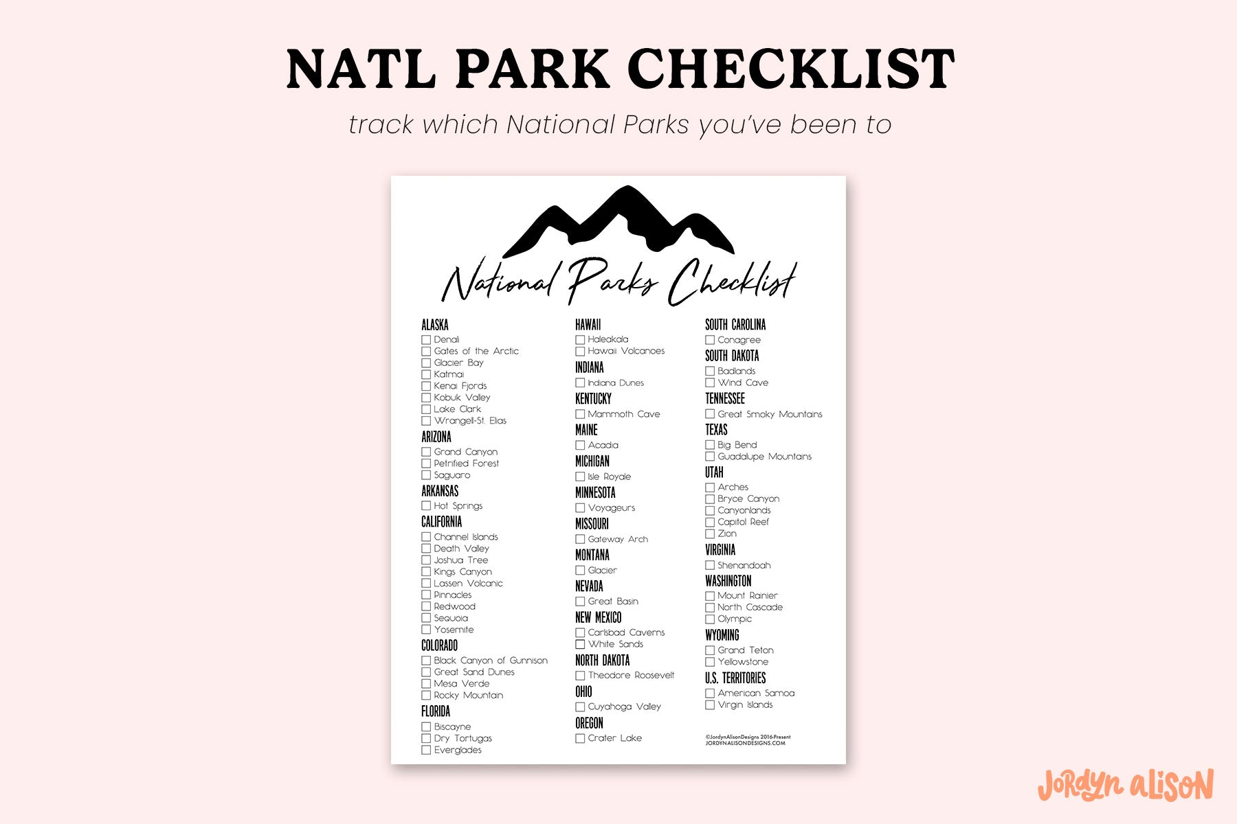 This checklist is for your personal use only. You may not distribute them by any means or sell to anyone. All Rights Reserved to Jordyn Alison Designs.