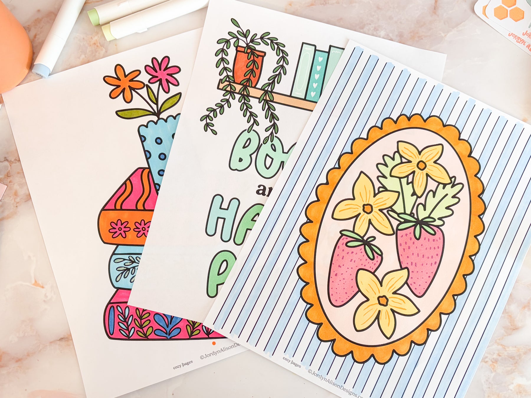 Relax and unwind with coloring pages from Jordyn Alison Designs! As a fellow coloring enthusiast (check out my fav supplies) I wanted to create some easy-to-color pages that I would enjoy coloring myself!