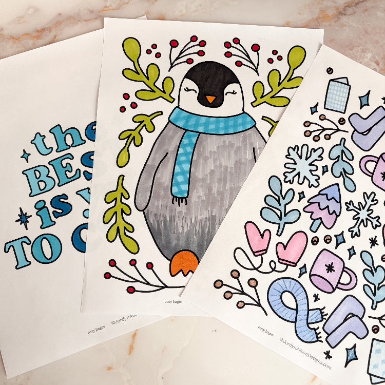 Relax and unwind with coloring pages from Jordyn Alison Designs! As a fellow coloring enthusiast (check out my fav supplies) I wanted to create some easy-to-color pages that I would enjoy coloring myself!